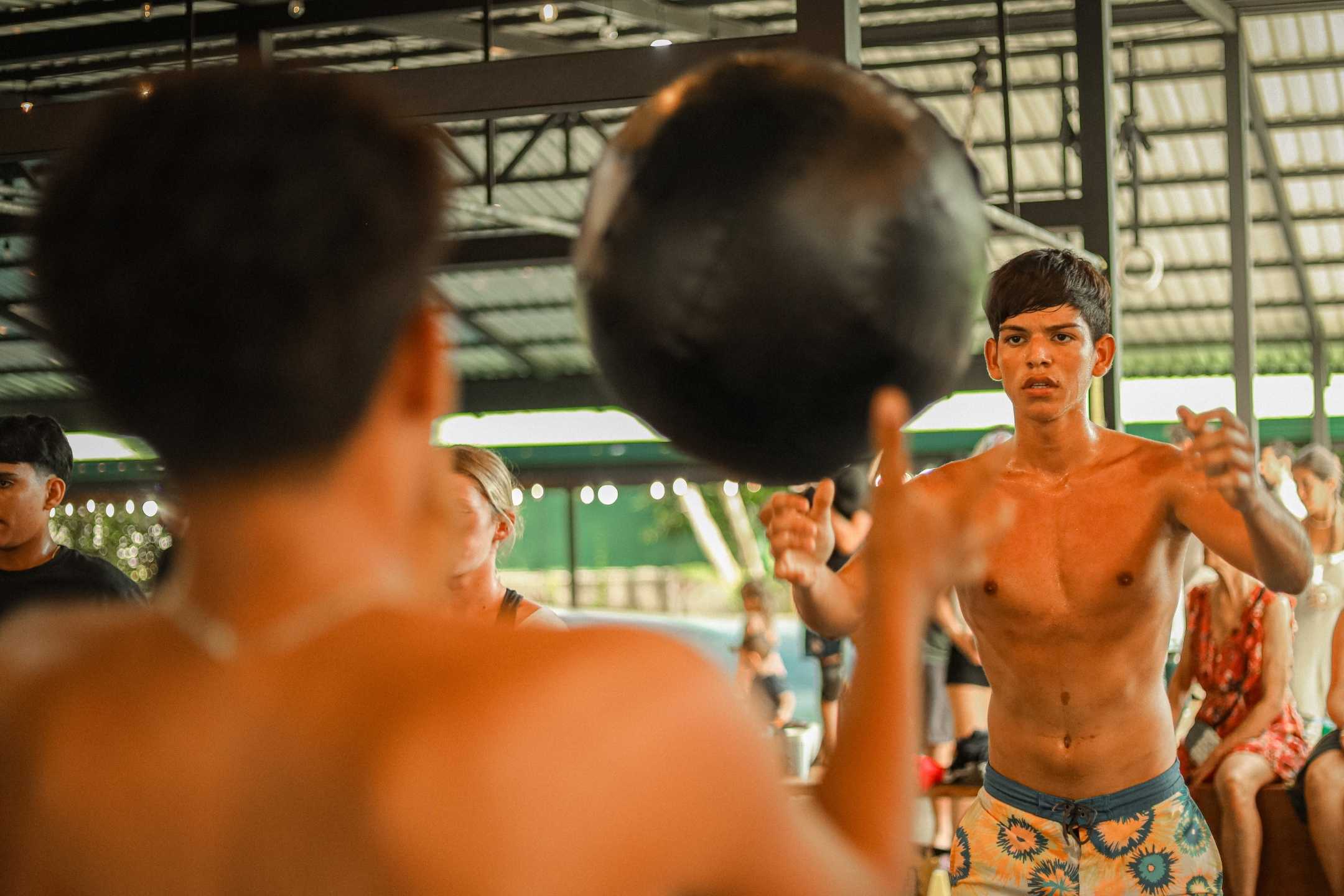 After surfing, the group enjoys a refreshing snack and hydration, then moves into a strength and mobility workout. Sessions include exercises that correct imbalances, build endurance, and enhance overall performance.
